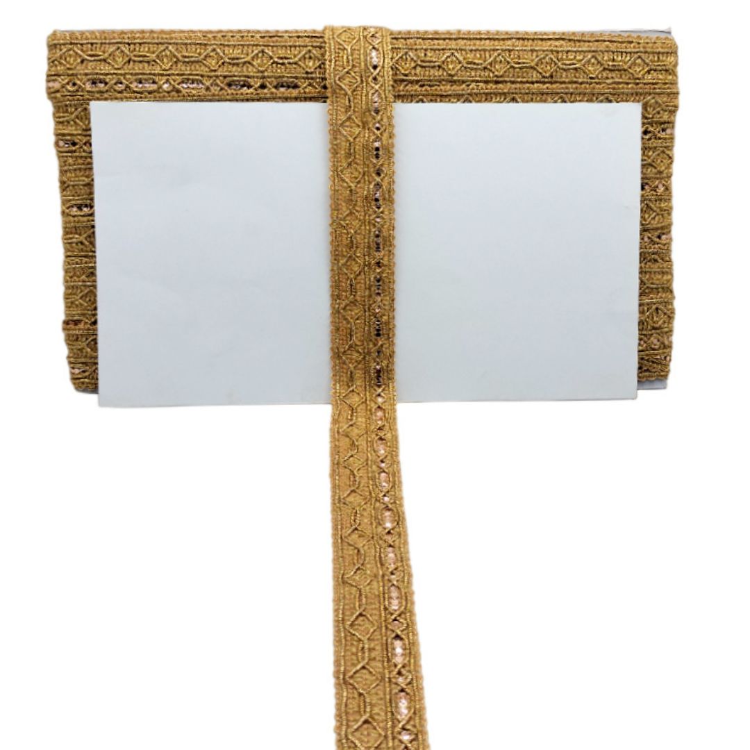 Kurlz 1 inch Antik Golden with Jute Zari Gold Color Exclusive Crochet Border For Art & Craft, Blouses, Dupatta, DIY, Curtains | Size: 9 Yards