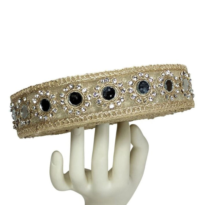 Button Dori, Glass Mirror, Organza Tissue Fabric, Zarkan Hand Work |