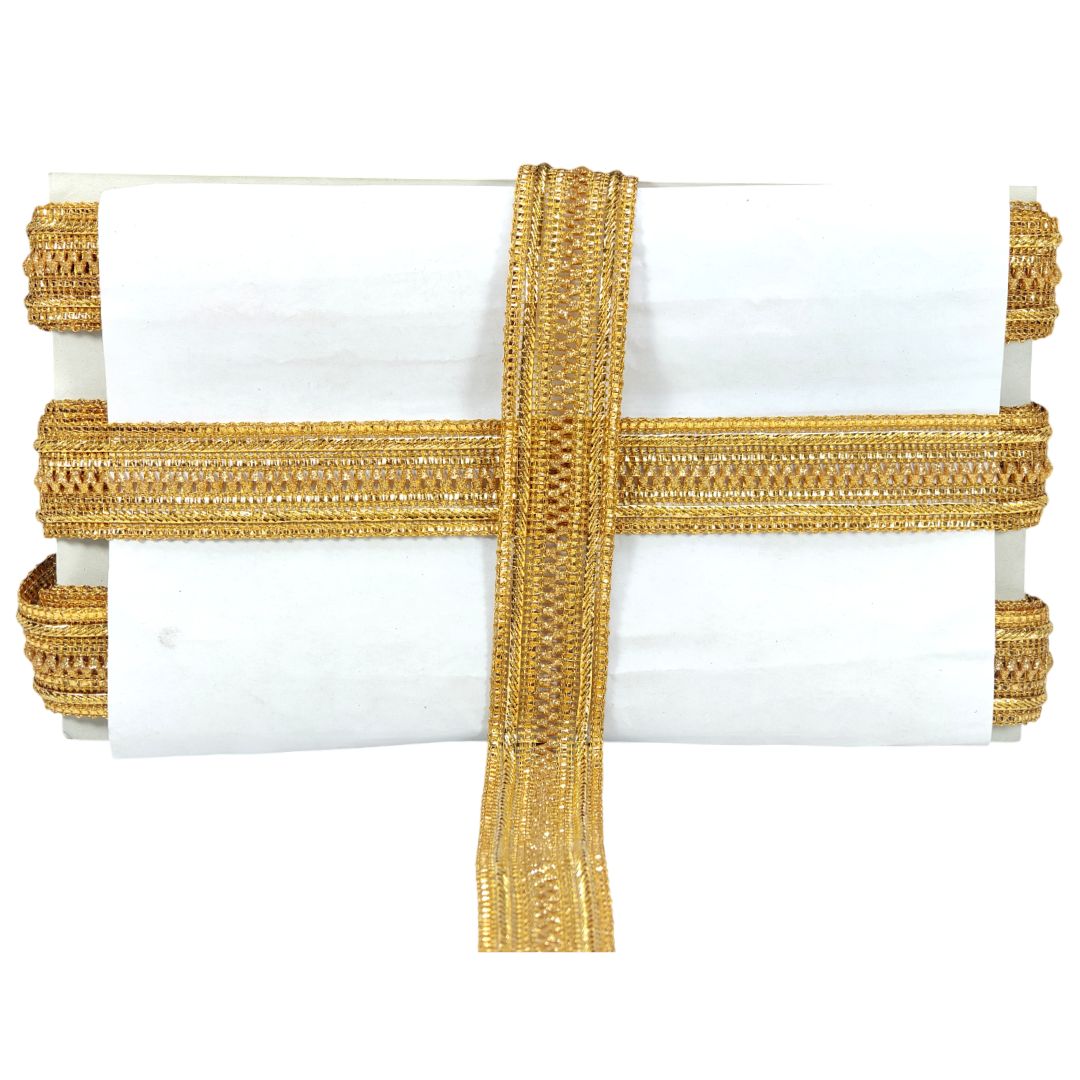 - These thread, zari work and golden lace border is the perfect embellishment for saree, lehenga, blouse, kurtis, salwar suits, dupattas, bridal wedding apparels and all types of ethnic wear.