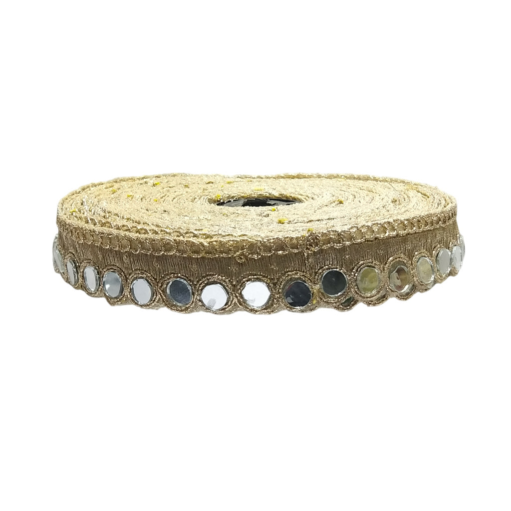 Kurlz 1 inch Exclusive Cutwork Polka Mirror Embroidery Lace For Dupatta, Sarees, Handbags, Footwear | Size: 9 Yards